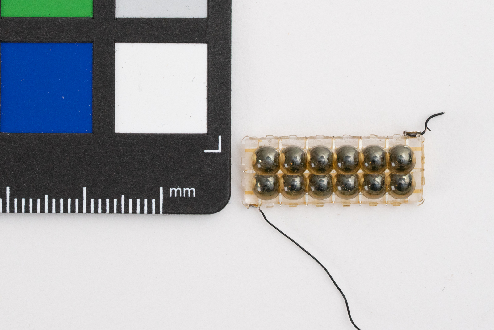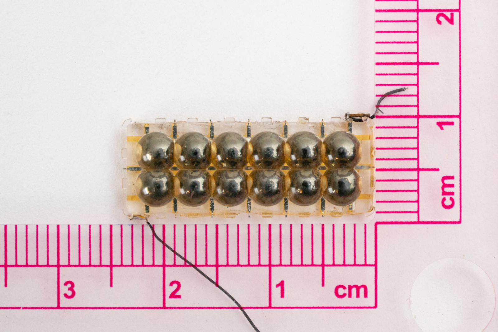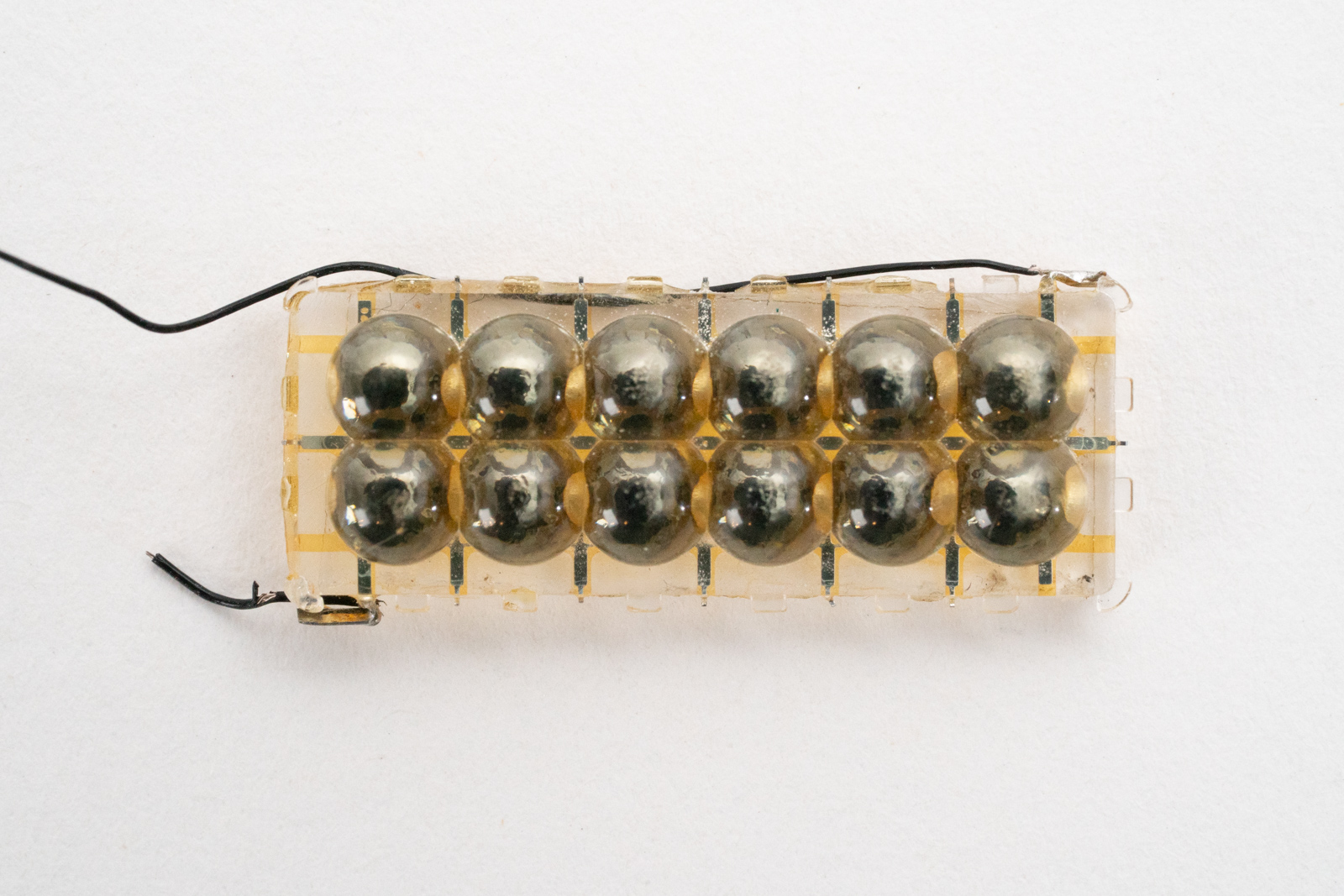 The Sphelar EIPV Series F12 Array is a micro solar generator that uses spheres of mono-crystalline silicon with a PN junction to generate power. This design allows for 360-degree power generation and features a polycarbonate encasement that adds additional solar concentration. The modules can be wired in series and parallel for different voltage and current outputs. These outputs range from 0.48 – 6 Vmp and 28 – 2.2 mA Imp respectively.